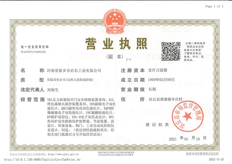 河南省新鄉市啟東工業有限公司始建于1987年,是專注研發、生產自動化儀器儀表(主要與壓力容器、鍋爐等容器配套使用)的廠家。主要產品有液位計(磁敏雙色型、磁翻柱型等)系列、烤包器熄火聯控裝置系列、壓力容器快開門安全聯鎖保護裝置系列、鍋爐報警器系列。二十多年來,公司產品暢銷國內并遠銷俄羅斯、蒙古與東南亞,深得廣大用戶的信賴和好評。我們多年來致力于自動化儀器儀表的研制生產,公司現具有完善的生產、試驗、檢測手段和設備。科技創新、誠信服務,是我們不變的經營理念,我們將以強有力的技術支持及售后竭誠為客戶提供良好的服務?! ?012年我公司成功研發了KCL系列烤包器熄火聯控裝置,并于2013年2月2日榮獲中華人民共和國國家知識產權局辦法的《實用新型**證書》<**號:2021202257735>該產品廣泛應用于唐鋼等大型鋼鐵企業,為烤包器安全作業提供了有力的保障?! ?002年我公司成功研發磁敏電子雙色液位計獨特的高亮度LED紅綠雙色顯示,獲得了專家的首肯和用戶的一致好評。在此基礎上我公司研發人員十年磨一劍,致力于XQFB-1防爆型磁敏雙色液位計的研發,于2013年12月27日由國家防爆電器產品質量監督檢驗中心檢驗合格并頒發防爆合格證書<編號:cnex19.0883>。該產品性能得到了充分的發揮,廣泛應用于含有Ⅱ類A·B級T1-T4組可燃氣體或蒸汽與空氣混合形成的爆炸性混合物的0區、1區危險場所。連接用戶DCS或PLC系統實現遠距離集中顯示和控制,從而實現節能、數字化管理。為用戶增加了一定的經濟效益和社會效益,。2014年公司成功申請了夢潤儀表的logo,新的品牌新的形象,夢潤儀表是啟東的LOGO, 歡迎新老用戶前來洽談合作?! ∥覀円蝗缂韧刈⒅乜蒲械耐度耄瑧{借產品的不斷更新、加大科技含量,進一步拓展市場。我們相信品質成就未來,以過硬質量、優惠價格、完善的售后服務熱忱歡迎廣大客戶來我司視察指導、洽談業務;精誠合作,共創輝煌!